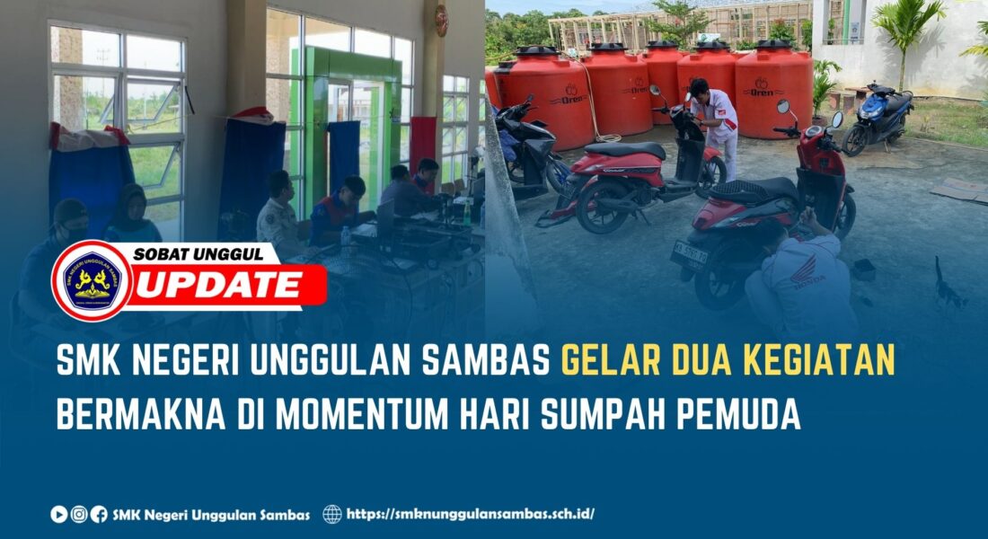 Dalam rangka memperingati Hari Sumpah Pemuda ke-97, SMK Negeri Unggulan Sambas menyelenggarakan dua kegiatan inspiratif yang menggambarkan semangat kebersamaan dan kepedulian generasi muda terhadap bangsa. Dua kegiatan tersebut adalah Dukcapil Goes To School bekerja sama dengan Dinas Kependudukan dan Pencatatan Sipil (Disdukcapil) Kabupaten Sambas, serta Service Motor Gratis bersama Daya Motor Honda Sambas.